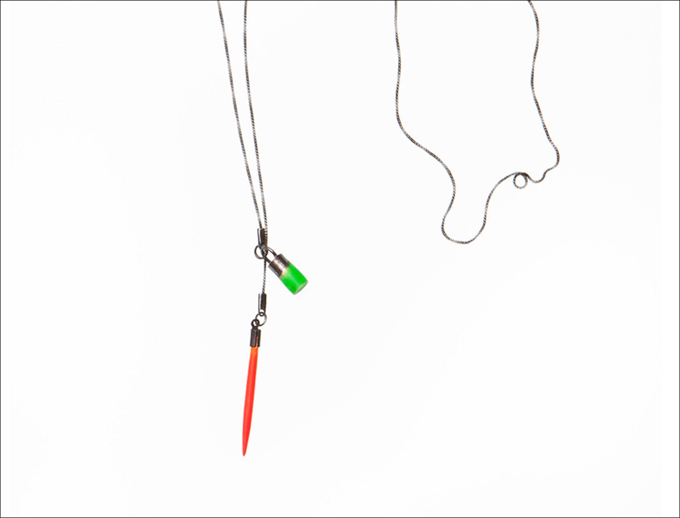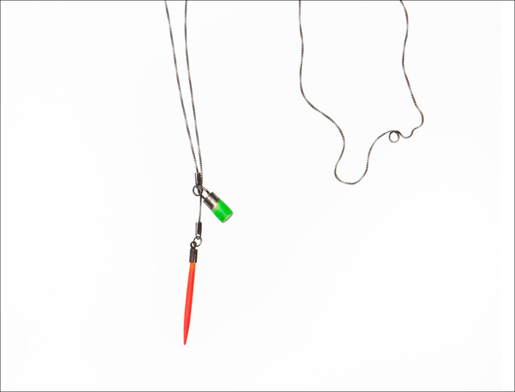 Designed and made by Tel Aviv's Hi! -Oxidized silver, rubber, wood. Measurements: Length: 30cm Dangle: 4cm Photographed by Roni Cnaani