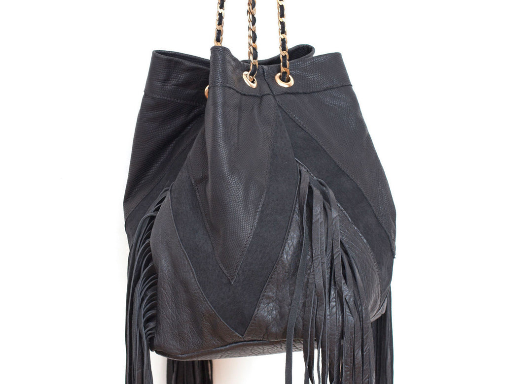 A day to night, high quality leather bucket bag with fringes. The perfect bag for all day situations, you can't go wrong with Adrian! Each bag is handcrafted and part of a limited edition.