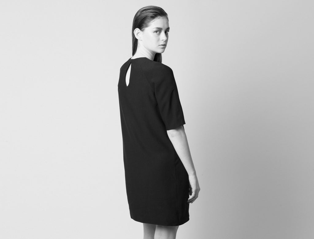 Alex is a classic ‘little black dress’. It has a straight figure, and there is a slit at the front (5.5 Inches). The sleeves end at the elbows. Can be worn for a day time or for evening event.