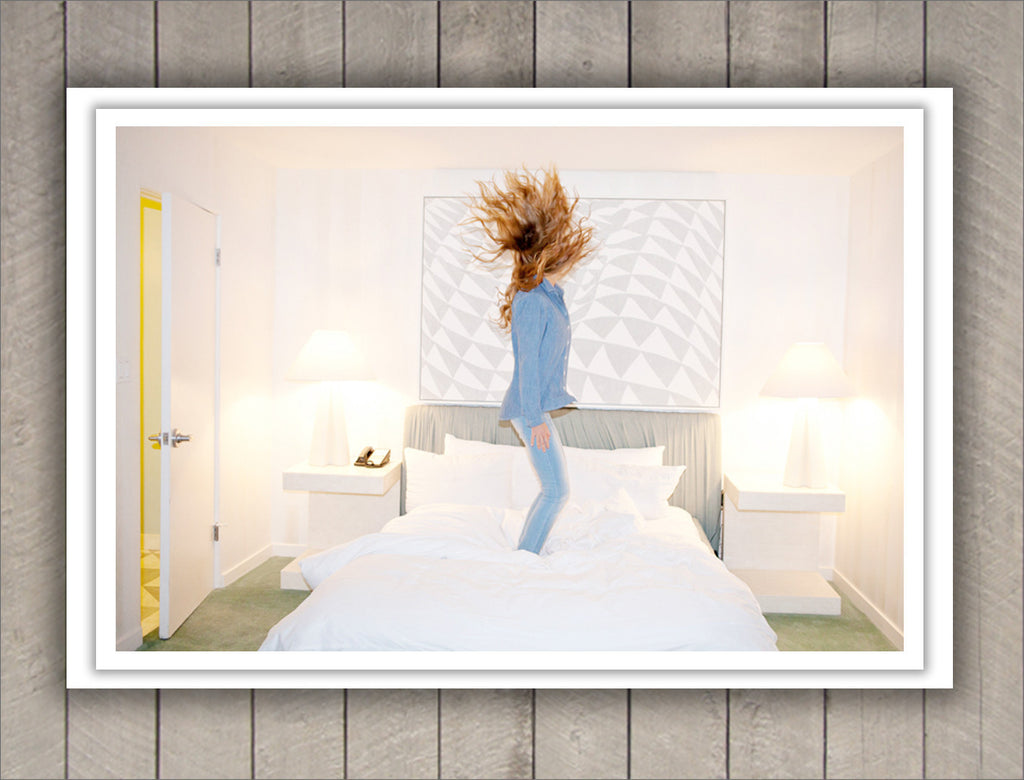 Photographed by Brooklyn's Douglas Lyle Thompson Jess Perez jumping on hotel bed. Yes, please. Location: Beverly Hills, Los Angele...