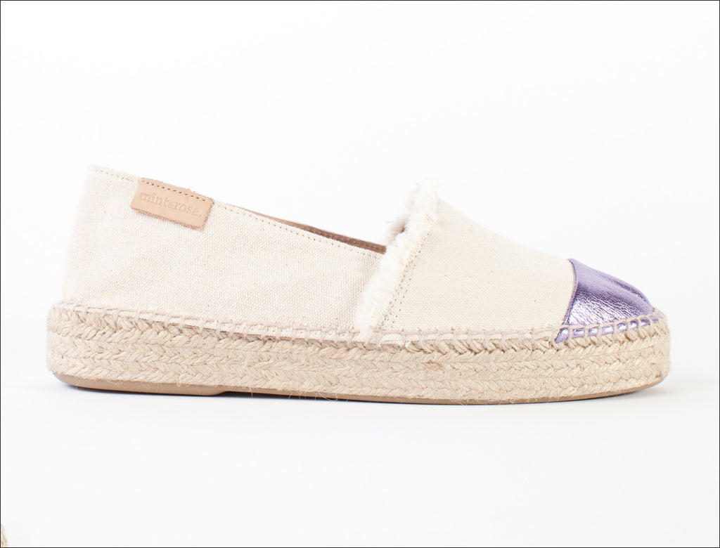 The Amalfi style is made with 100% washed cotton canvas washed with vegetable dyes, giving them a fresh, soft and summery look. It is combined with a 100% metallic goat leather toecap. The inner sole is covered with the same canvas that as the outside, and a 100% cowhide label which provides more subjection to the foot. The sole is made by jute, totally flexible and fully rubber coated which provides more comfort and durability.