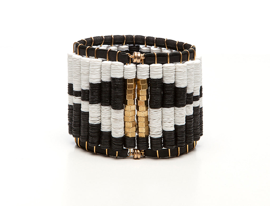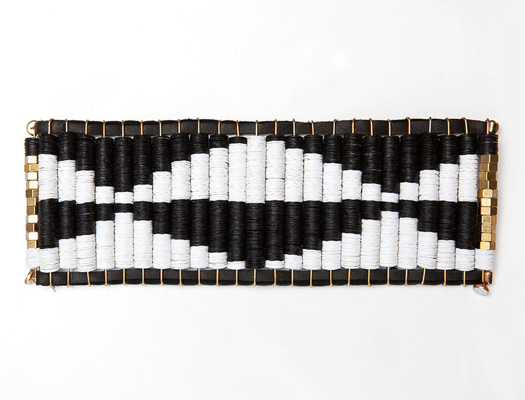 Designed and made by Tel Aviv's FORESTA -The Black & White Ikat bracelet is a hand made piece. -Weaving of colorful sequins and f...