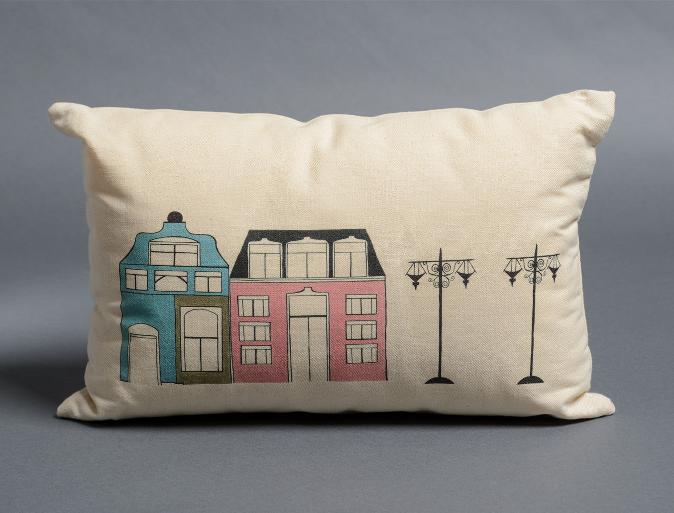 The prints are original drawings by the studio. This decorative pillow collection was born from the idea to collect a few pillows together with Dutch street elements. Therefore in order to maintain this idea we recommend purchasing more than one pillow.