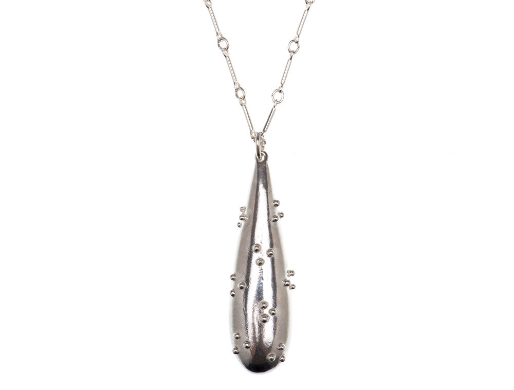 This pendant from the "Bolitos" collection is a new interpretation of vintage drop shaped jewelry. The exceptional chain emphasized the feminine and elegant style of this necklace.