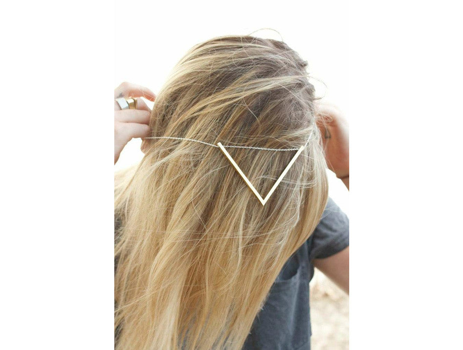 V pendant, 3 inch on 3 inch of polished brass on a 100% sterling silver chain. Perfect to seal any outfit with a modern touch. Dress up or down. Great for a summer festival look or an important event!