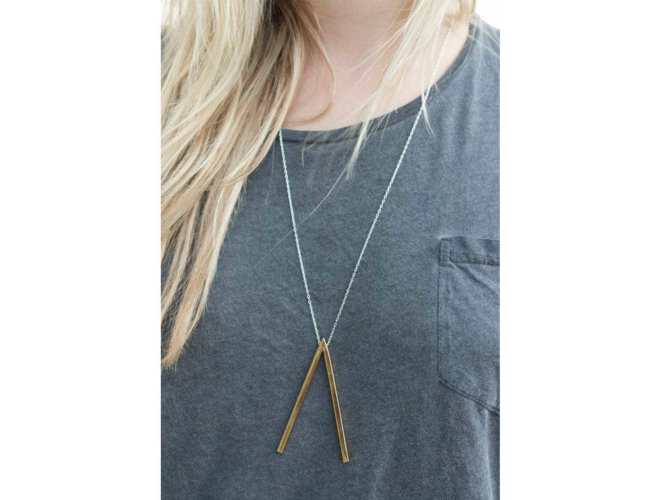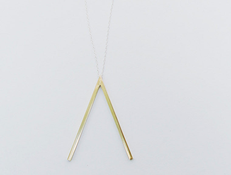 Downside V-shaped polished brass on a 100% sterling silver chain Perfect to seal any outfit with a modern touch, dress up or down. Great for a summer festival look or an important event!