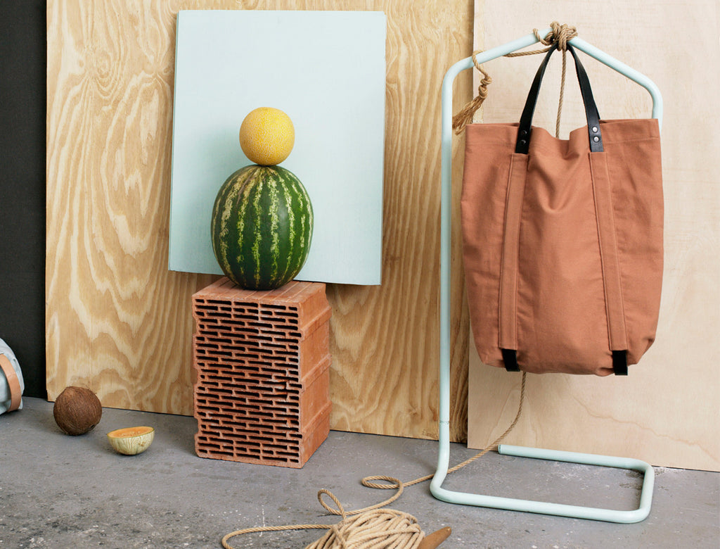 Vegetal tanned cow leather carrier straps, unlined. Bag fastens with a magnetic metal button, also includes a metal zip inner pocket.