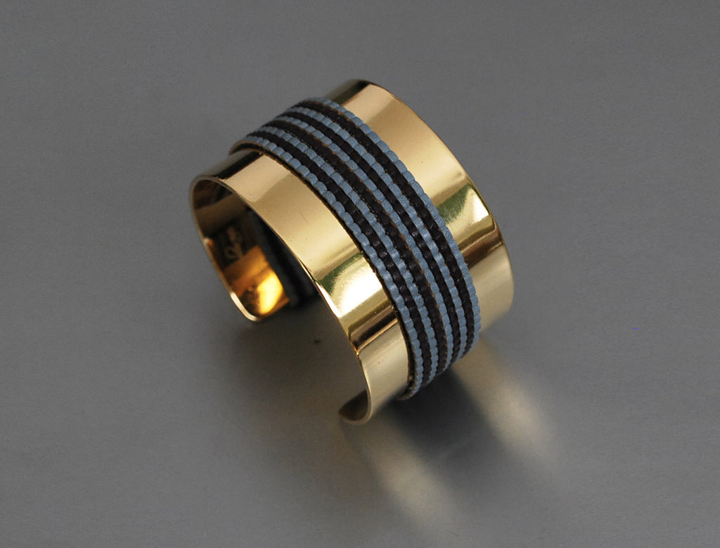 Designed and made by Tel Aviv's DAJ Darya Elitis blue-toned faux leather straps snake around an open cuff bracelet. 24K gold-plated; 3.5c...