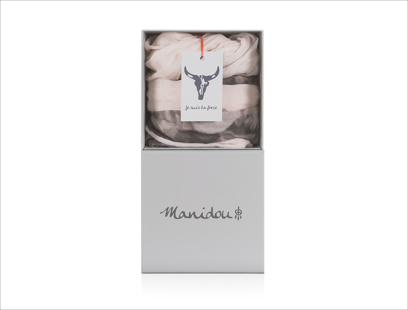 Precious and infinitely soft, Manidou shawls are like talismans. Messages of love and protection, each one is marked with a symbol borrowed from magic and legends... because when you really care about someone, you would like to offer more than a mere gift to show them how you feel.
