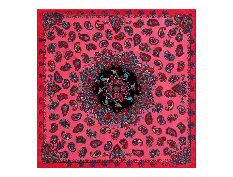 The design has been digitally printed on silk scarf.