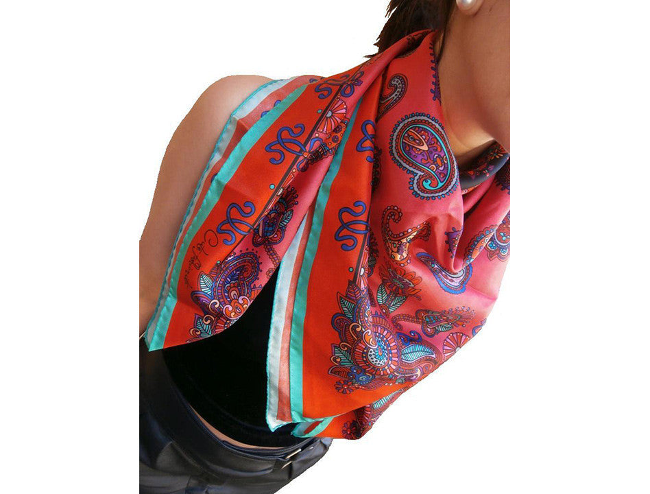 Beautiful hand-rolled scarf 100% silk twill. The scarf is drawn inspiration from India . The pattern has been hand drawn with gouach...
