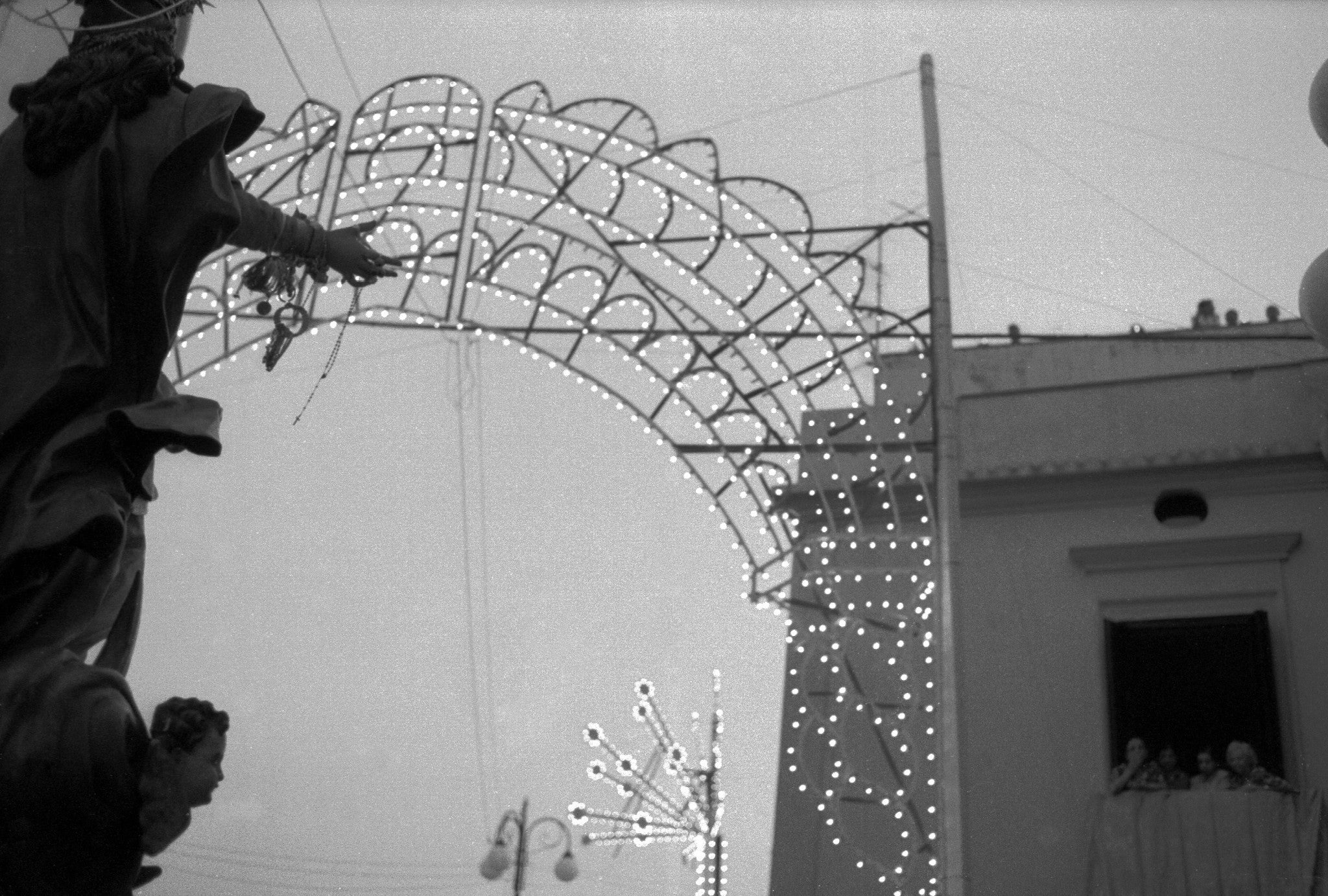 Photographed by Milan's Pasquale Mascia Diamante. Procession at sundown. “Calabro-Lucane” is the name of a now non-existing railway line ... More