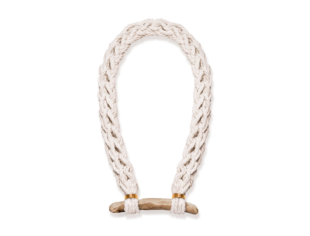 A bold yet lightweight, beautifully tactile, hand woven neck piece. The word ‘Chalai’ is the Ethiopian Mursi tribe's word for ‘necklace’ and hints at the origin of just some of the inspirations for the White // Wood collection.
