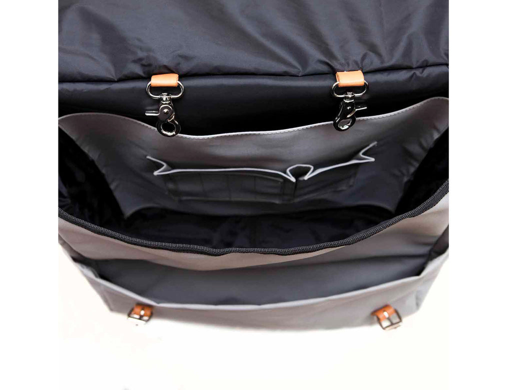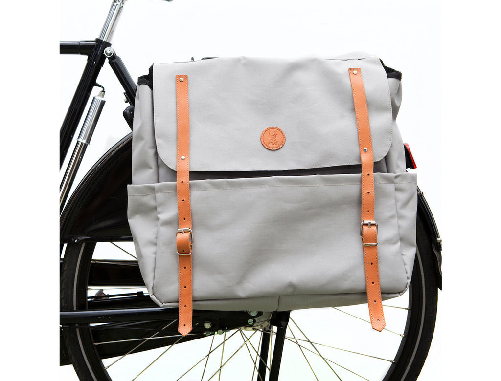 Description: The designer’s proposal for vintage bikes! A set of panniers made by heavy duty materials, which maintain a classic shape with discrete vintage details. It also provides you with plenty of interior compartments. The down town bikers and vintage seekers will love it!