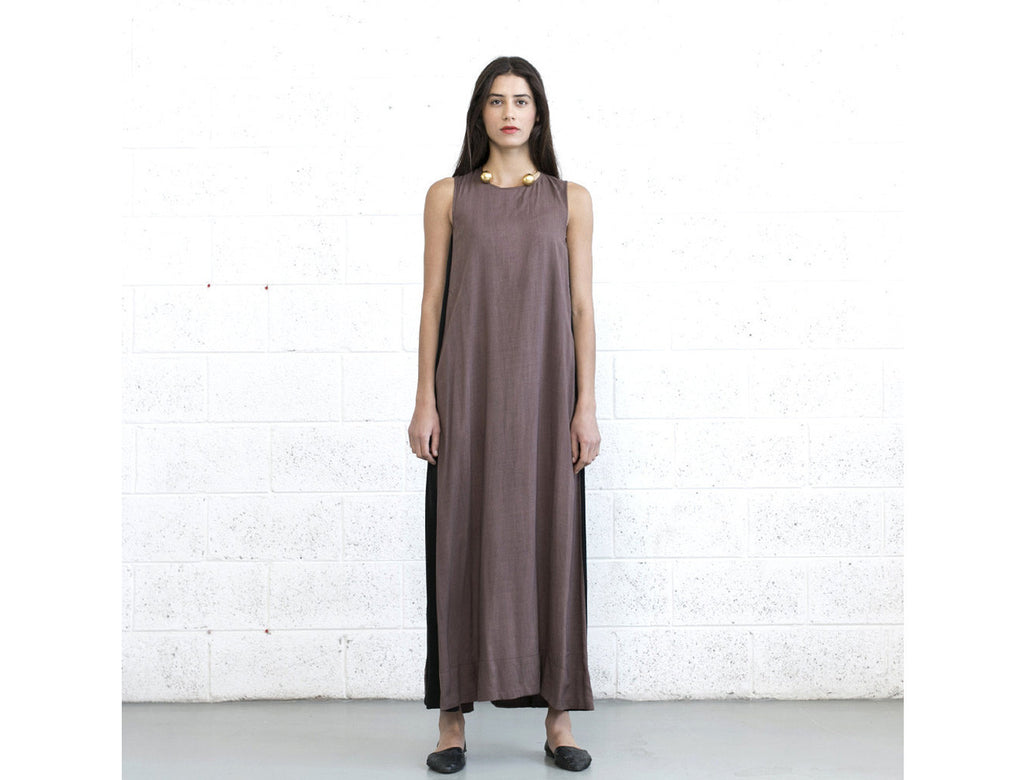 This flowy maxi dress features 2 side pockets and a beautiful small slit with a button on the back. A great day-to-night look, with clean, full on chic silhouette.
