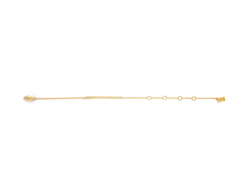 A bracelet with a stone set bar, available in 18k yellow gold, 18k rosé gold, or rhodium plated sterling silver. Every Avinas jewelry piece is stamped with a quality mark "925" and the Avinas Infinity Logo.