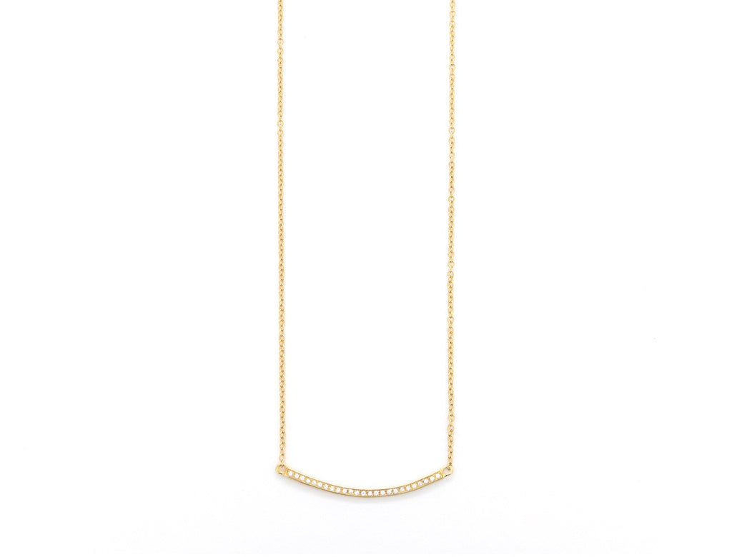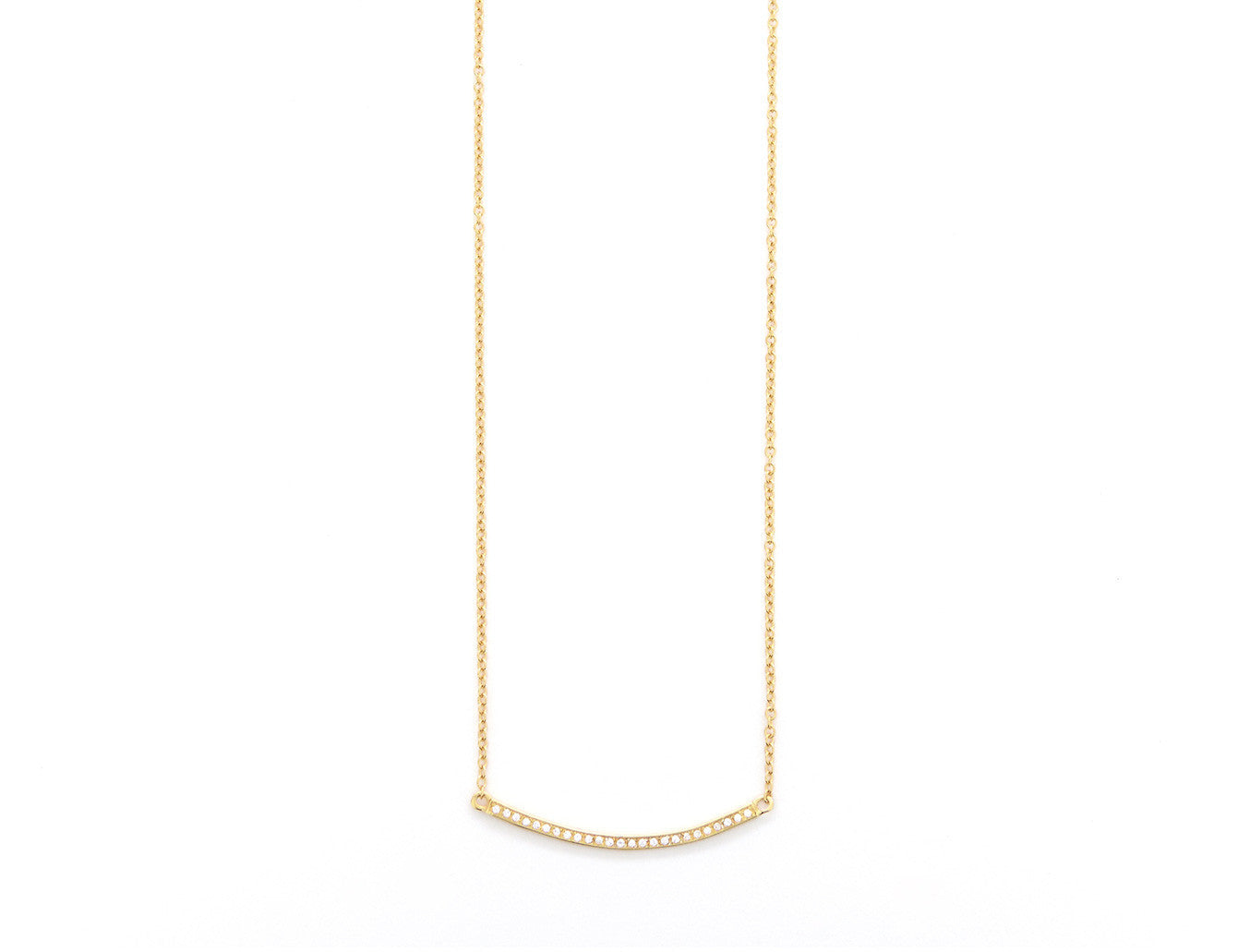 Short Necklace with bar pendant, set in 18k yellow gold, 18k rosé gold or rhodium plated sterling silver. Every Avinas jewelry piece is stamped with a quality mark "925" and the Avinas Infinity Logo.