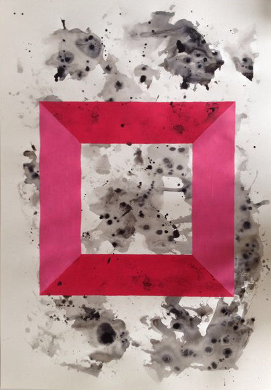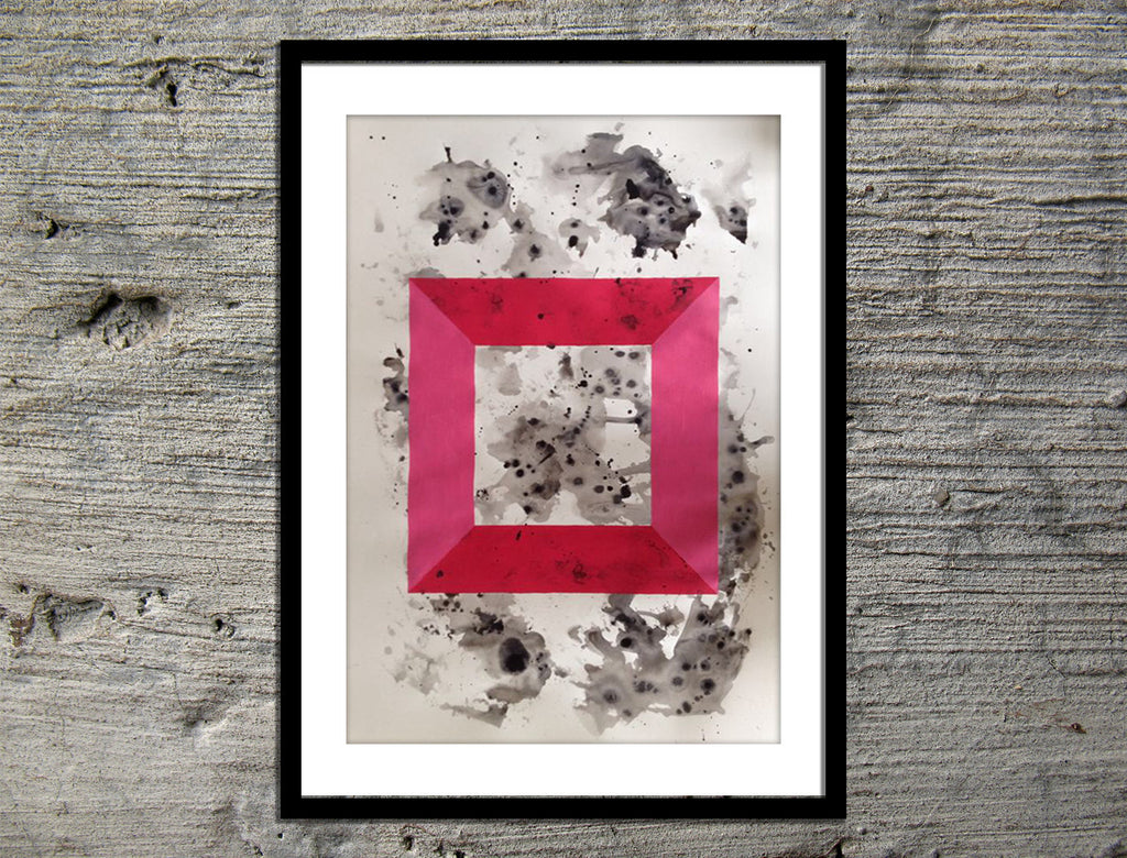 Hand painted black ink background with acrylic design painted on top in two tones of pink.