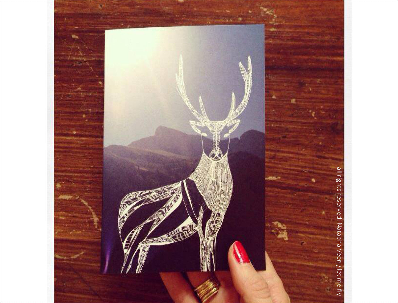 Designed and made by Geneva's Natacha Veen A wish card with an envelope. On the card: Deer and mountains. More