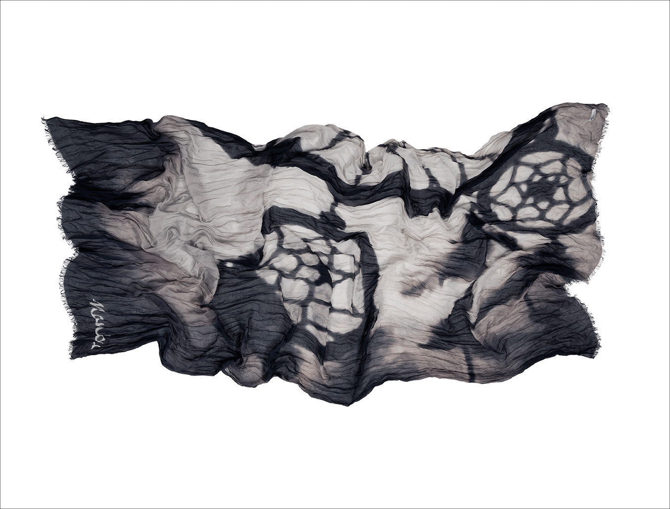 Materials: Modal 85% / silk 15% ; Crinkled effect / fringed edges