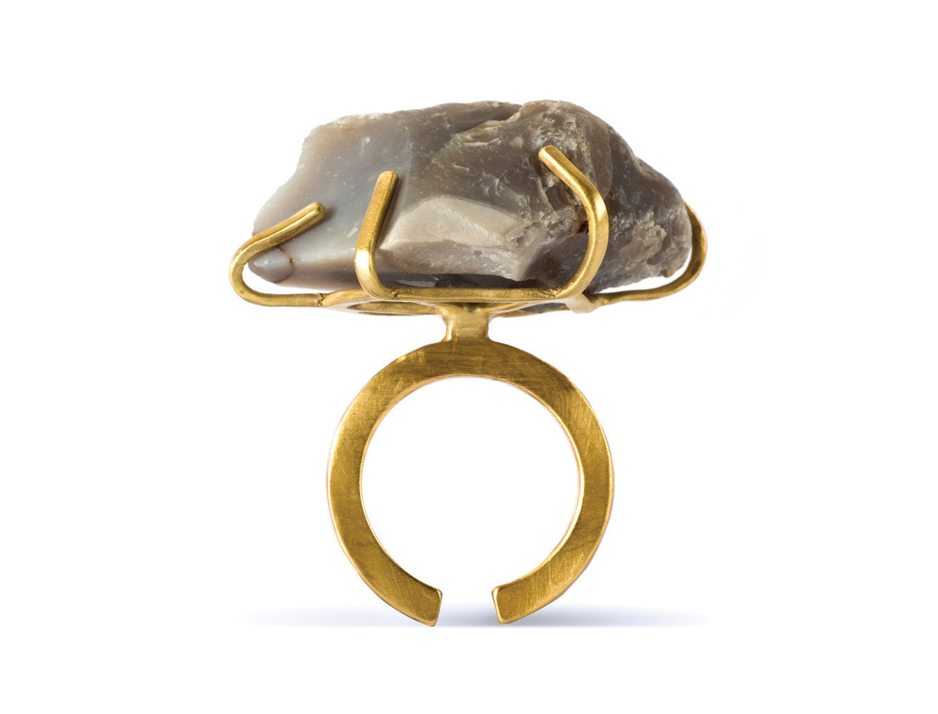 - Materials: Lost & Found Flint rock, 22ct gold plated buff finish setting and 2.5mm adjustable ring shank.