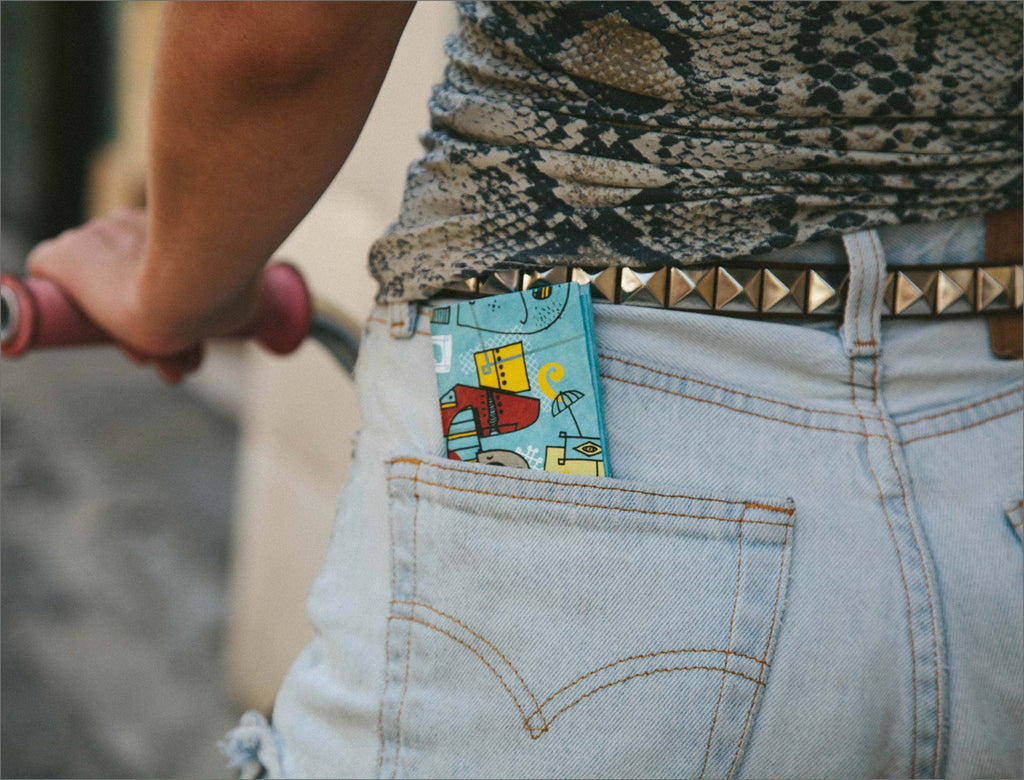This card holder is brought to you by Barcelona's street artist, ELNA. Like all paperwallet accessories you can expect the highest quality from from ELNA's card holder. This Tyvek card holder is paper-thin, durable, comfortable, expandable, tear-resistant, water proof, and long lasting. The card holders design has 2 credit card slots, 2 business card flaps, and 2 side pockets. There is no compromise in functionality here.