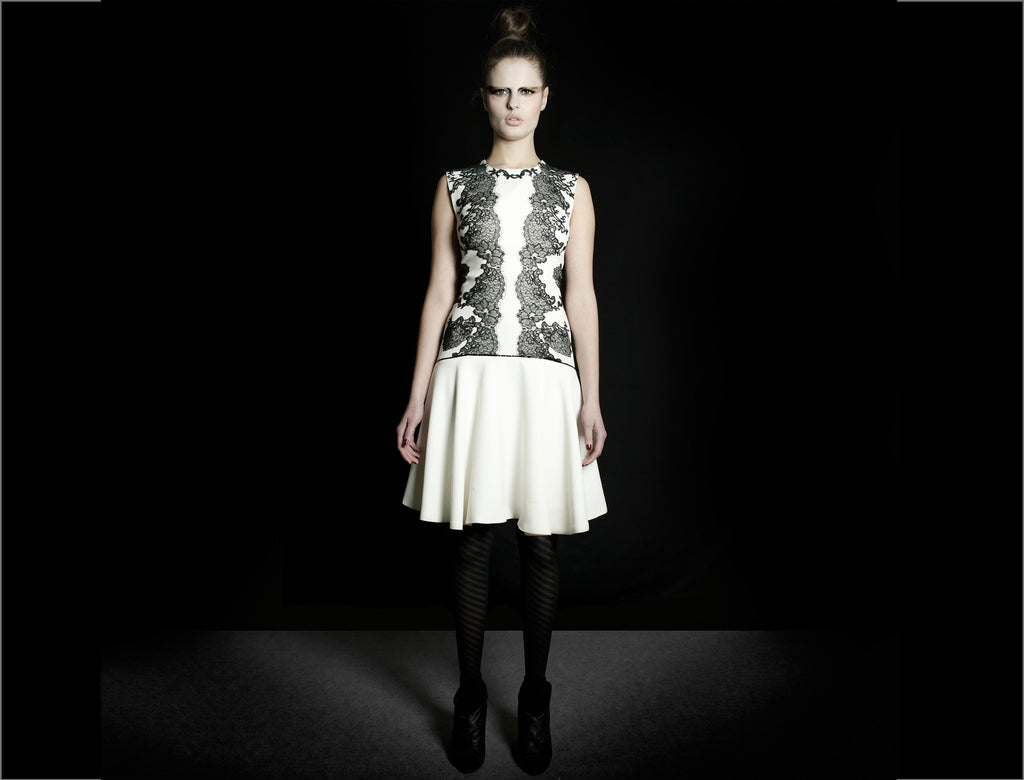 Be the envy of all the women in the room with this embroidered lace dress. The tailored bodice is detailed with lace and then falls into a flared skirt for a flattering fit. Due to production schedules it will take 12 days to ship.