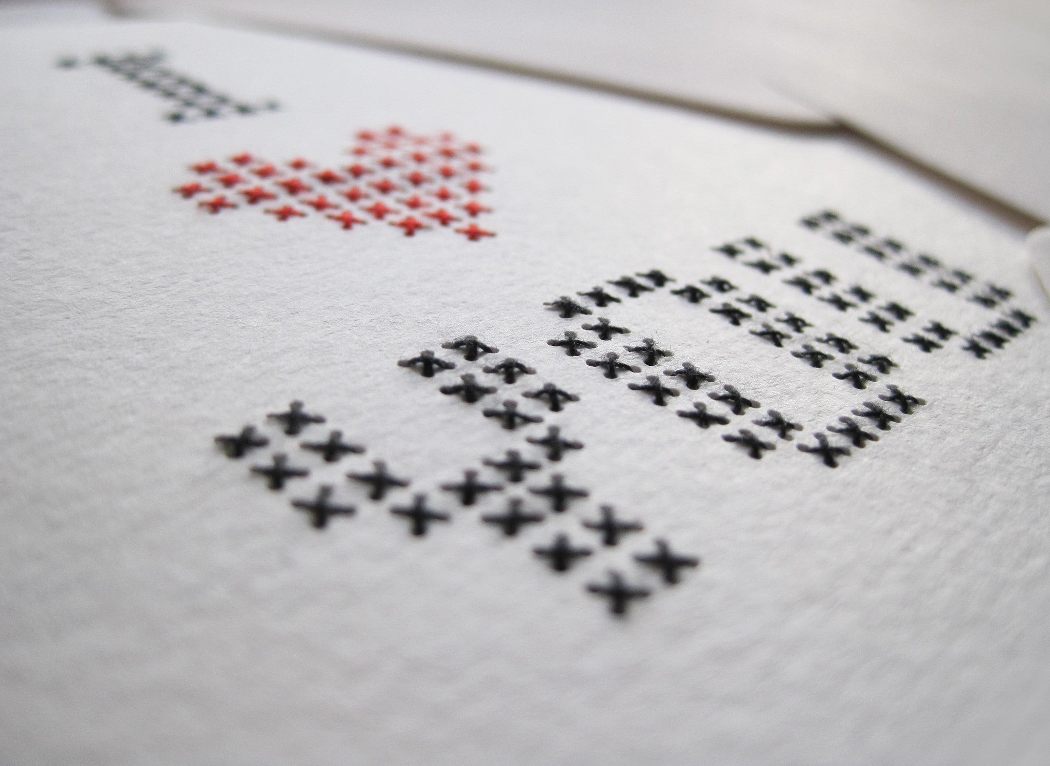 Cross Stitch Cards.  Handmade. Material: 220 g' Paper, Black & Red Thread. Envelope included. Size: 10cm x 10cm / 4" x 4". Handmade i... More