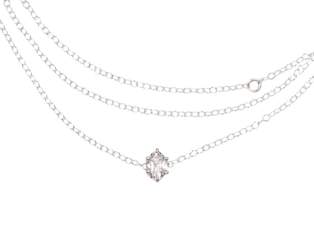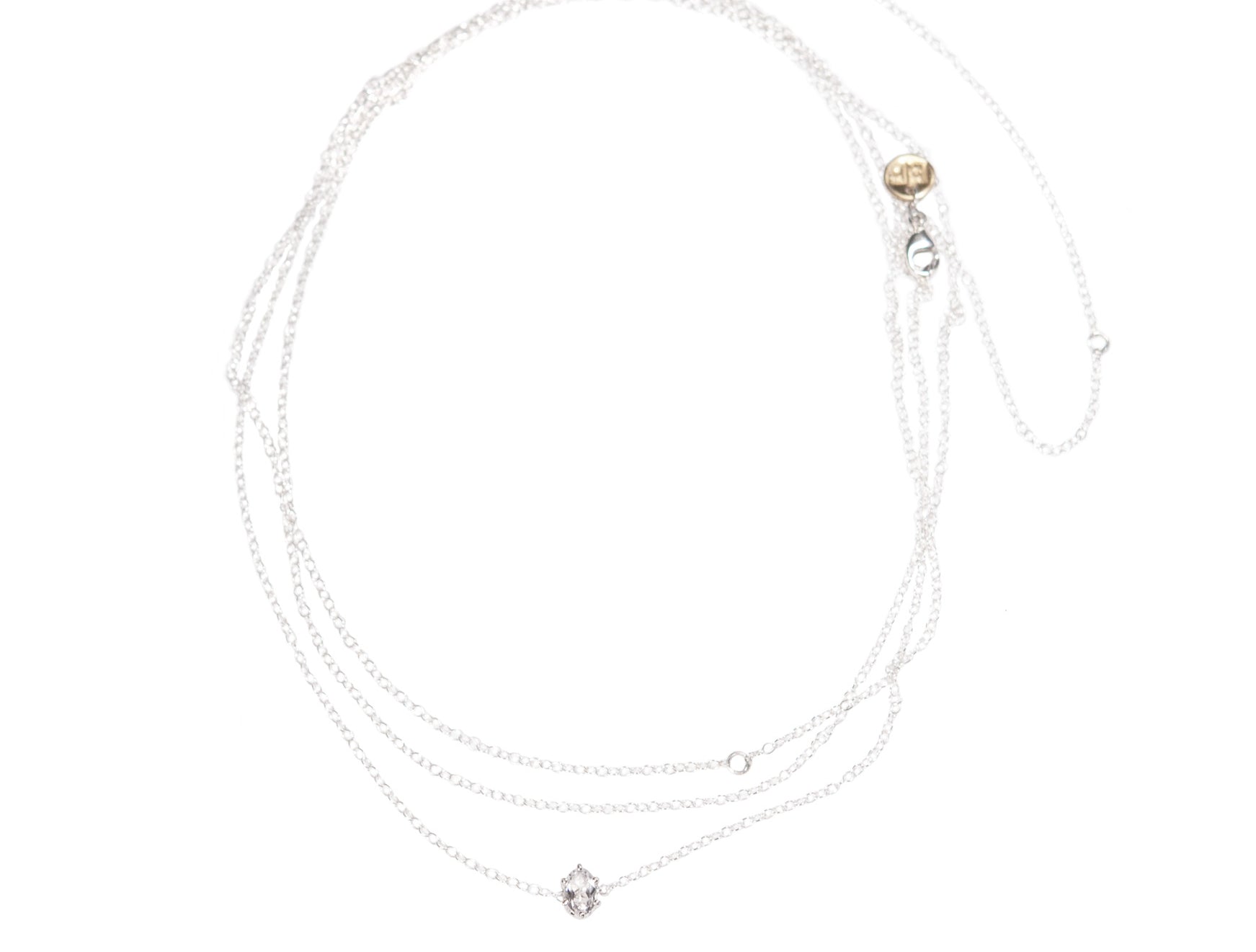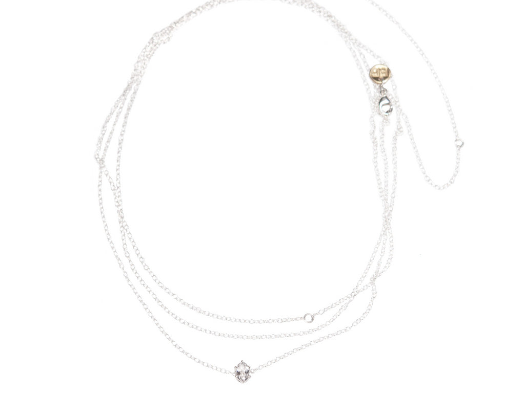 • Materials: Sterling silver chain, setting, and lobster clasp. Swarovski crystal Subtle contrast gold fill LF tag. Can be worn multiple ways