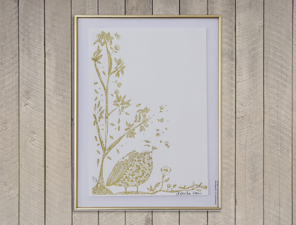 Designed and made by Geneva's Natacha Veen Size: 18cm x 24cm / 7.1" x 9.5" *Price includes gold frame.