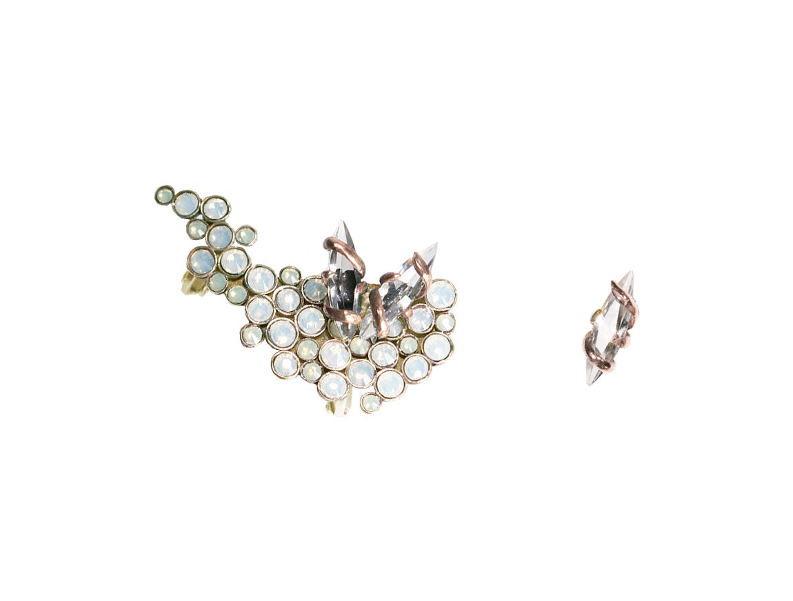 Finely cut Swarovski crystals are cradled by claw settings in rose gold plate.