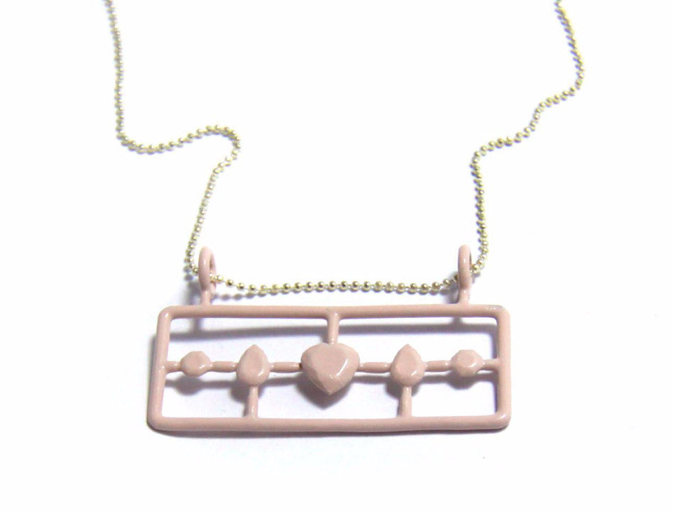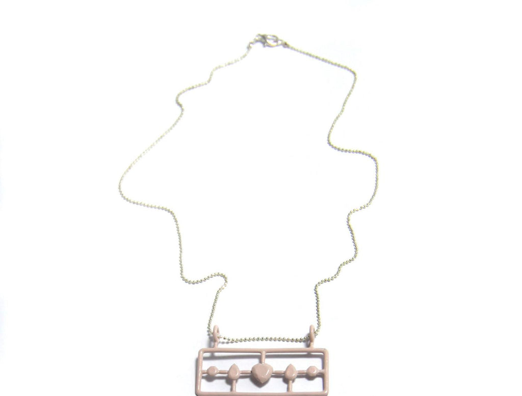 This piece features a pendant with five diamonds cast in brass and painted nude pink, set as an toy assembly kit. This item is from "THE ASSEMBLY LINE" collection, inspired by assembly toy kits and industrial aesthetics. These forms are merged into the world of classic luxury jewelry, creating an ironic fusion with a touch of nostalgia.