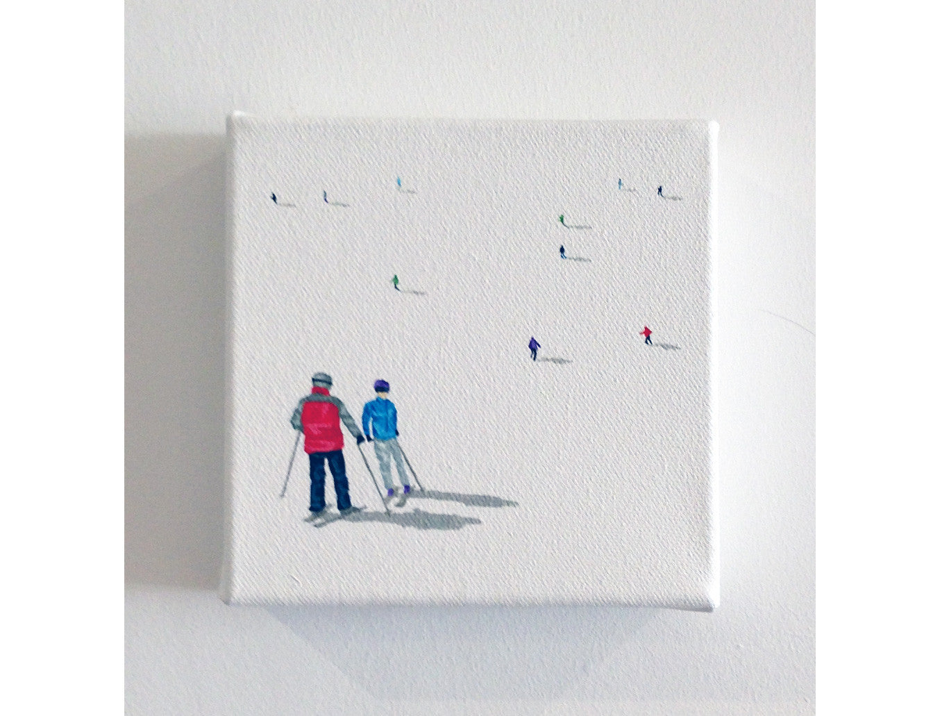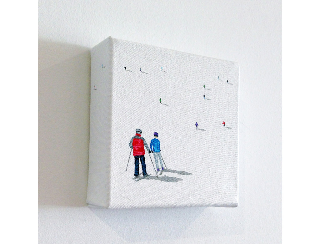 This is one of Stephanie Ho’s latest works from the Human Planet series. It is based mainly on photographs taken on a ski slope in Switzerland. Painting continues around the deep edge to give it a 3-dimensional feeling. No framing required.