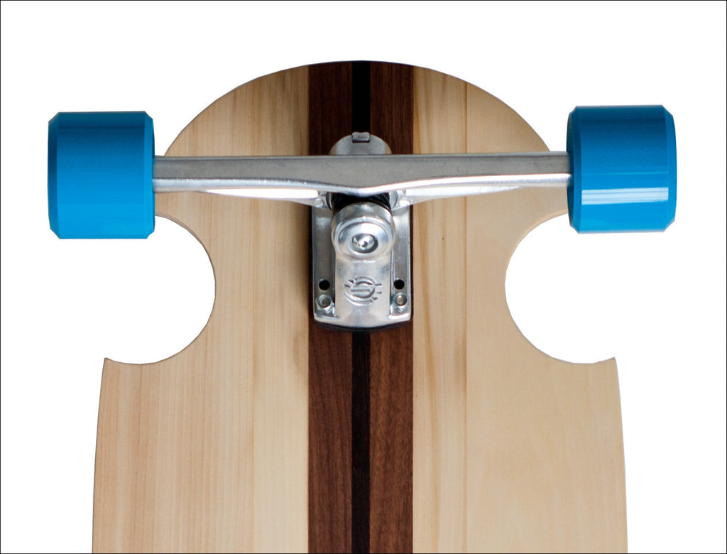 Hand-shaped in east Williamsburg/Bushwick Brooklyn by danielmoyerdesign using choice hardwood scrap collected from local furniture makers or sourced from local storm damaged trees [right now that means hurricane sandy] paired as complete longboards with state-of-the-art carving trucks and high/pure content large urethane wheels from Brooklyn's own bustin longboards.