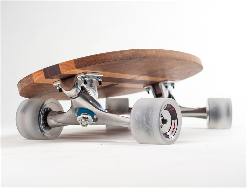 Hand-shaped in east Williamsburg/Bushwick Brooklyn by danielmoyerdesign using choice hardwood scrap collected from local furniture makers or sourced from local storm damaged trees [right now that means hurricane sandy] paired as complete longboards with state-of-the-art carving trucks and high/pure content large urethane wheels from Brooklyn's own bustin longboards.