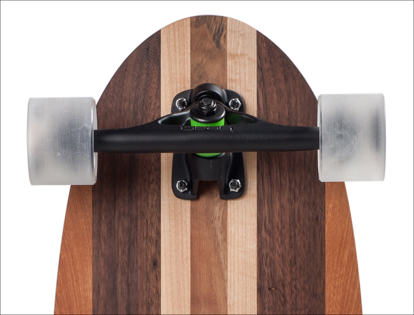 Hand-shaped in east Williamsburg/Bushwick Brooklyn by danielmoyerdesign using choice hardwood scrap collected from local furniture makers or sourced from local storm damaged trees [right now that means hurricane sandy] paired as complete longboards with state-of-the-art carving trucks and high/pure content large urethane wheels from Brooklyn's own bustin longboards.