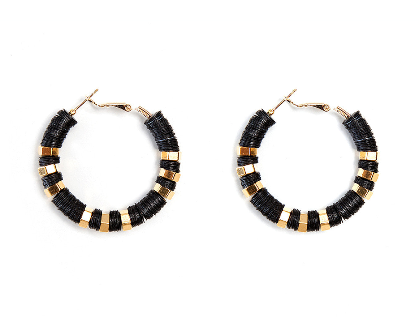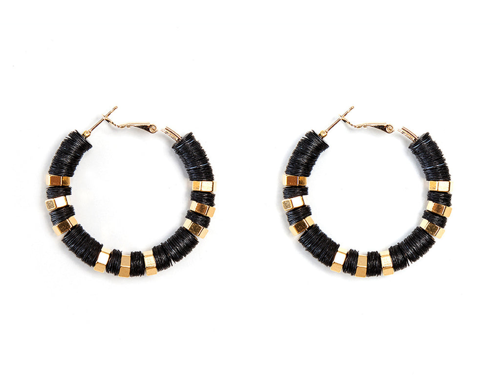 Designed and made by Tel Aviv's FORESTA -Gold plated hoop-earrings, combined with black sequins and 100% gold plated bolts. Thi... More
