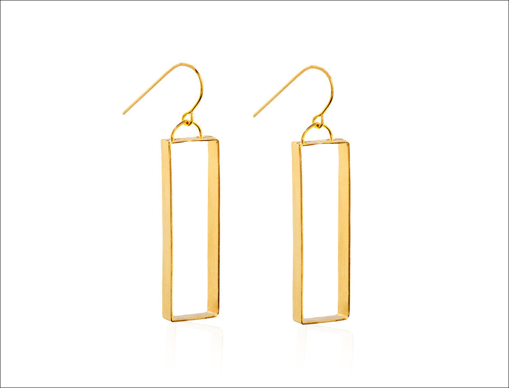 The gold rectangle earrings can fit any look, from day to night. These earrings are delicate but also noticeable and can create a big impression. These geometric earrings are made by hand with a lot of attention and care.