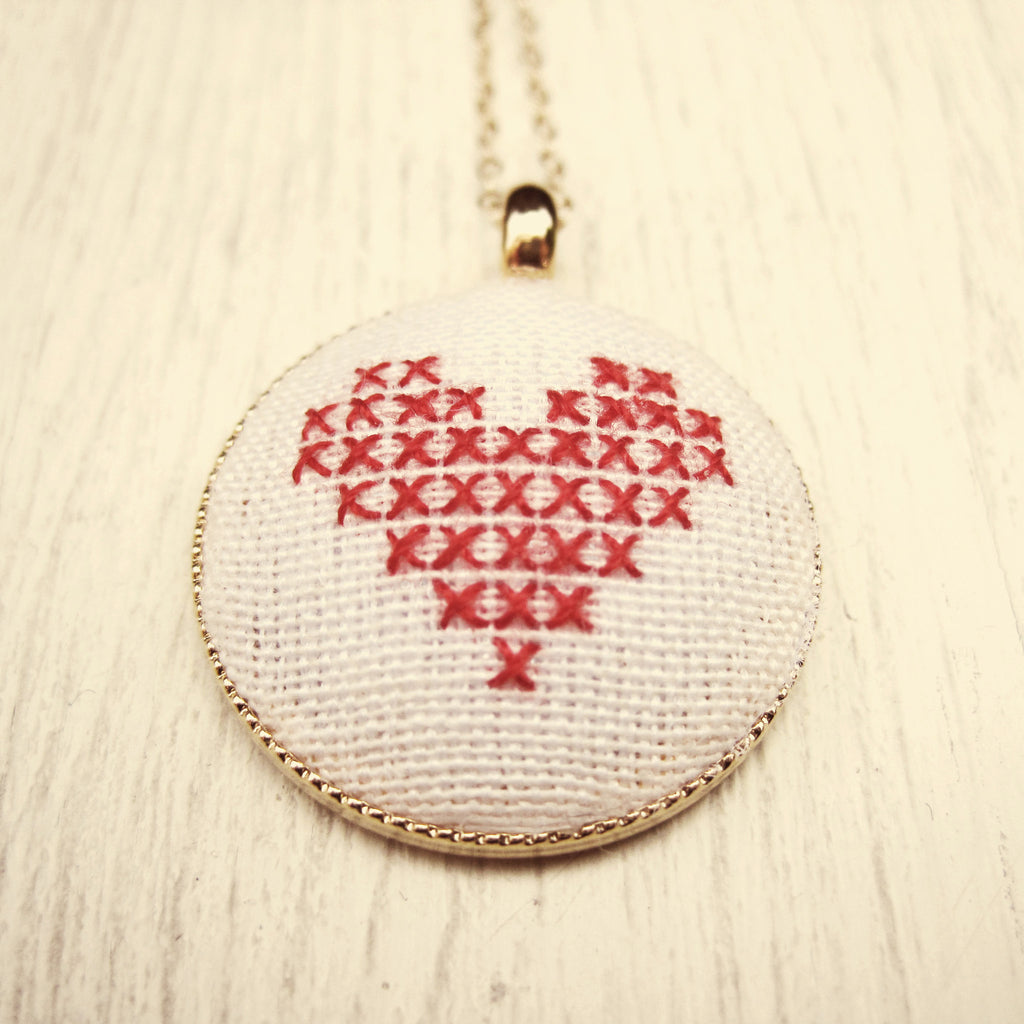 Handmade by Tel Aviv's Shirly Rov Hand-stitched with red thread, cotton on gold plate. Special Edition for Weddings in Gold. Gold filled ... More