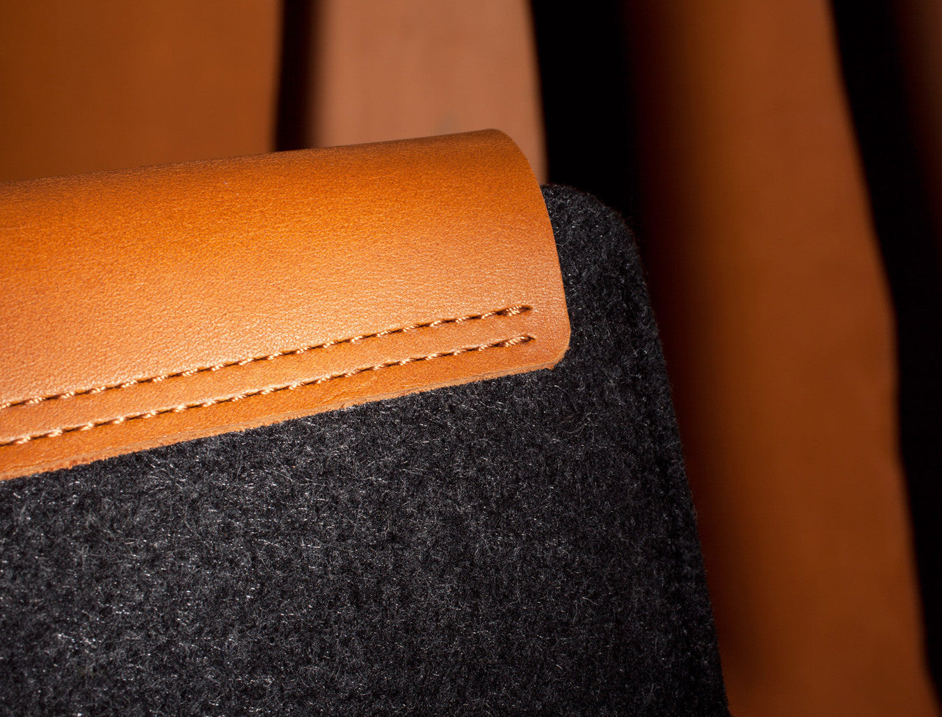 One of our most popular designs, back in its best shape ever. Crafted out of a unique combination of felt and vegetable-tanned leather, this sleeve has been designed to fit the 13” Macbook Air and 13” Macbook Pro with Retina display. Praised by leading style blogs including Highsnobiety, Hypebeast, and Design Milk. We’ve reworked every element of the praised Macbook sleeve design and made it even better. We started with the core, the materials, and developed every component with the highest possible attention to detail.