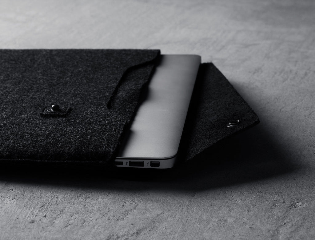 Crafted out of a unique combination of felt and vegetable-tanned leather, this sleeve has been designed to fit the 13” Macbook Pro. Praised by leading style blogs including Highsnobiety, Hypebeast, and Design Milk.One of our most popular designs, back in its best shape ever. We’ve reworked every element of the praised Macbook sleeve design and made it even better. We started with the core, the materials, and developed every component with the highest possible attention to detail.