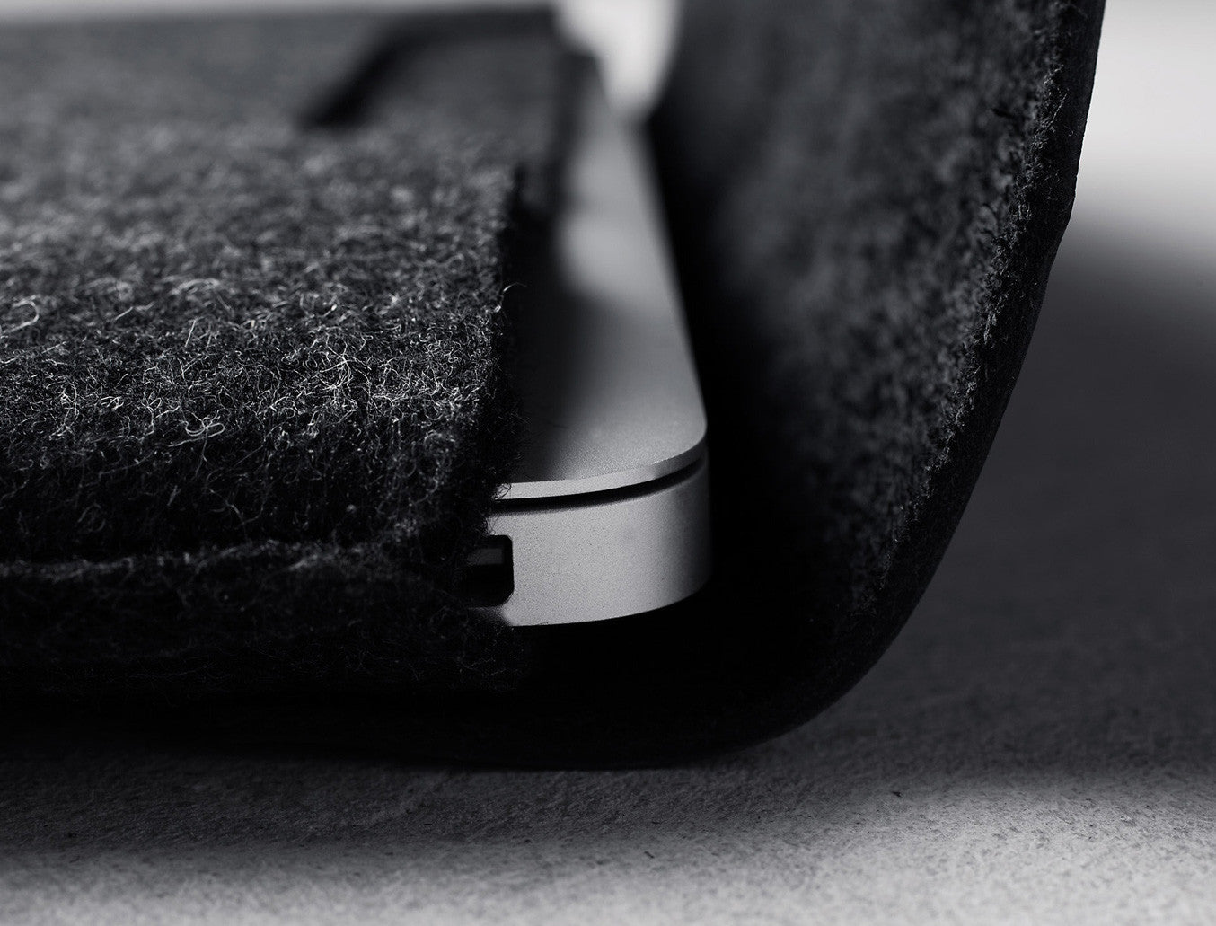Felt is a sustainable and renewable material, offering durability while remaining soft to the touch. Felt can be easily cleaned, and a special treatment gives it excellent anti-peeling properties and makes the sleeve water repellent.