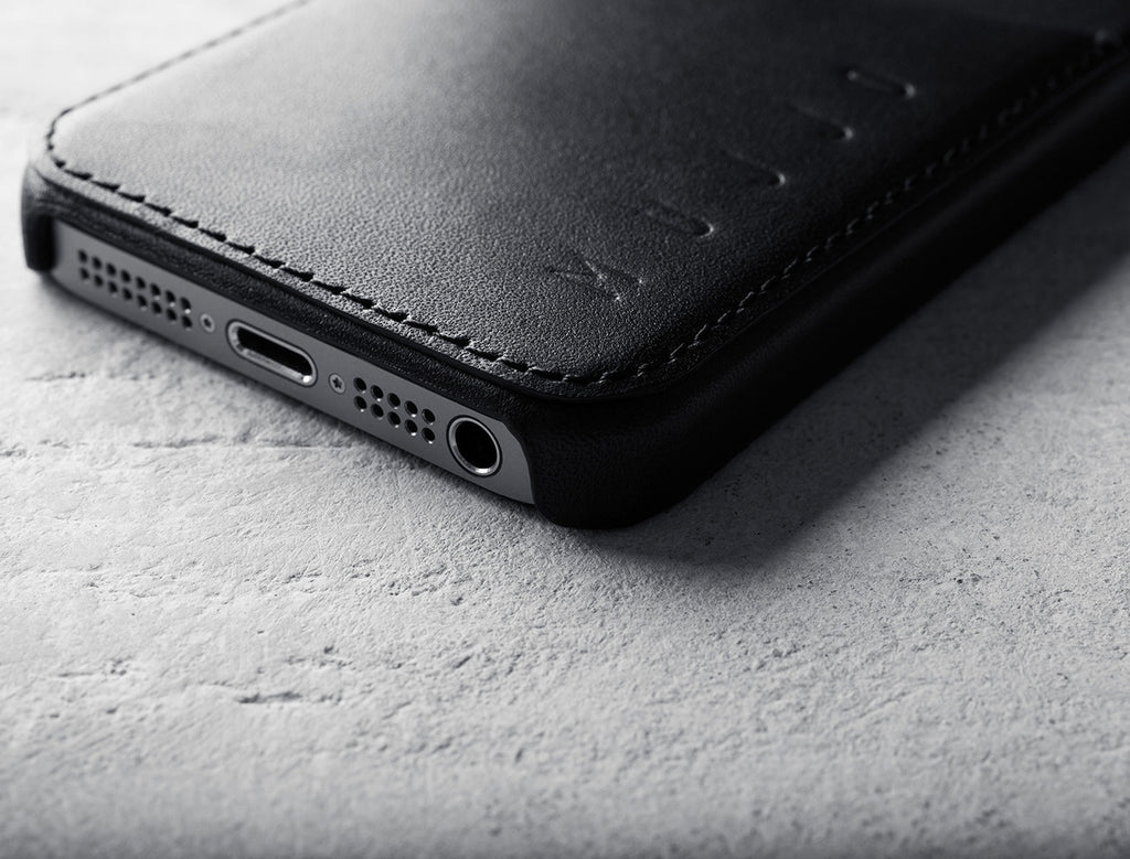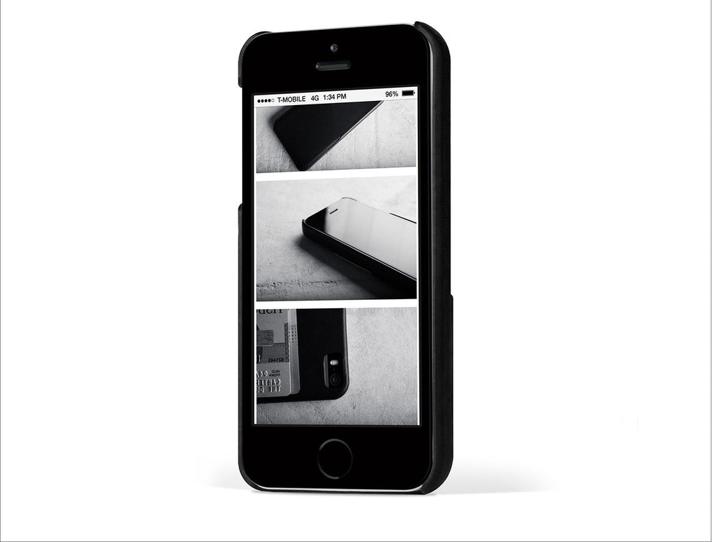 The Leather iPhone 5s wallet case has a powerful and seductively understated presence. This is due in considerable part to the noticeably high quality vegetable-tanned leather covering the case. A leather panel stitched to the back of the case creates a pocket with a slant opening to conveniently store a few cards. When you take the sleeve in hand, you’ll instantly notice the quality of the materials.