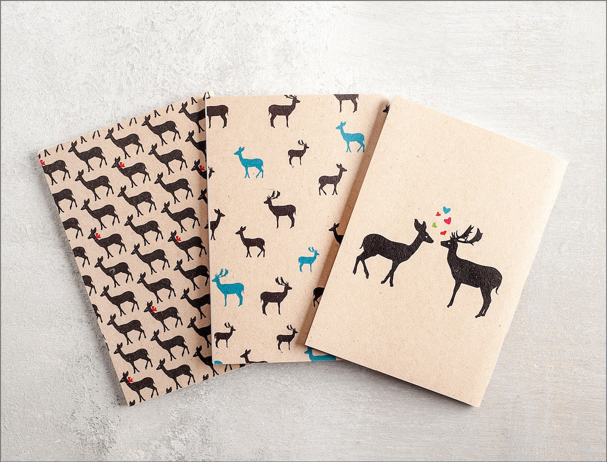 Finding it hard to choose between all of the notebooks Hamutelet offers? Why not buy a set of three? This set is perfect for taking notes, jotting down reminders, writing poetry or even that screenplay you’ve been talking about. You'll receive three notebooks: The notebook covers are made using brown craft paper printed with original illustrations by Hamutelet.