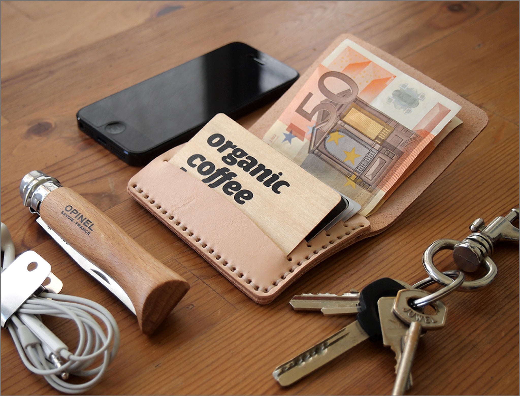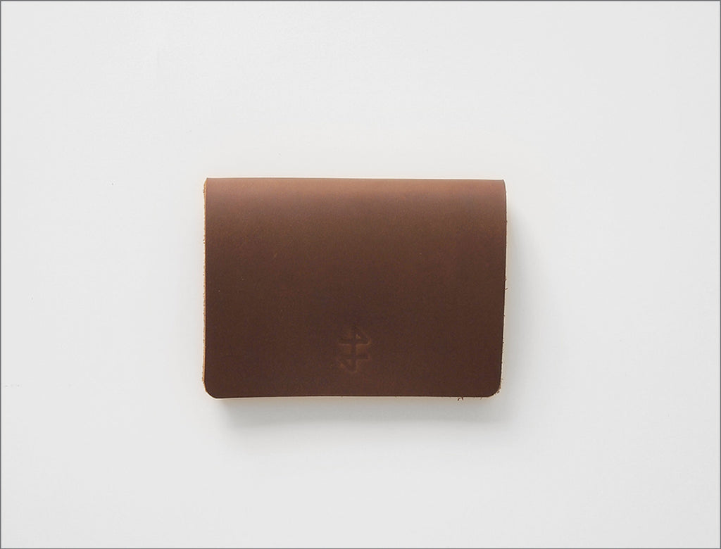 A hand crafted brown leather wallet for bills and credit cards. Best for use with US bills.
