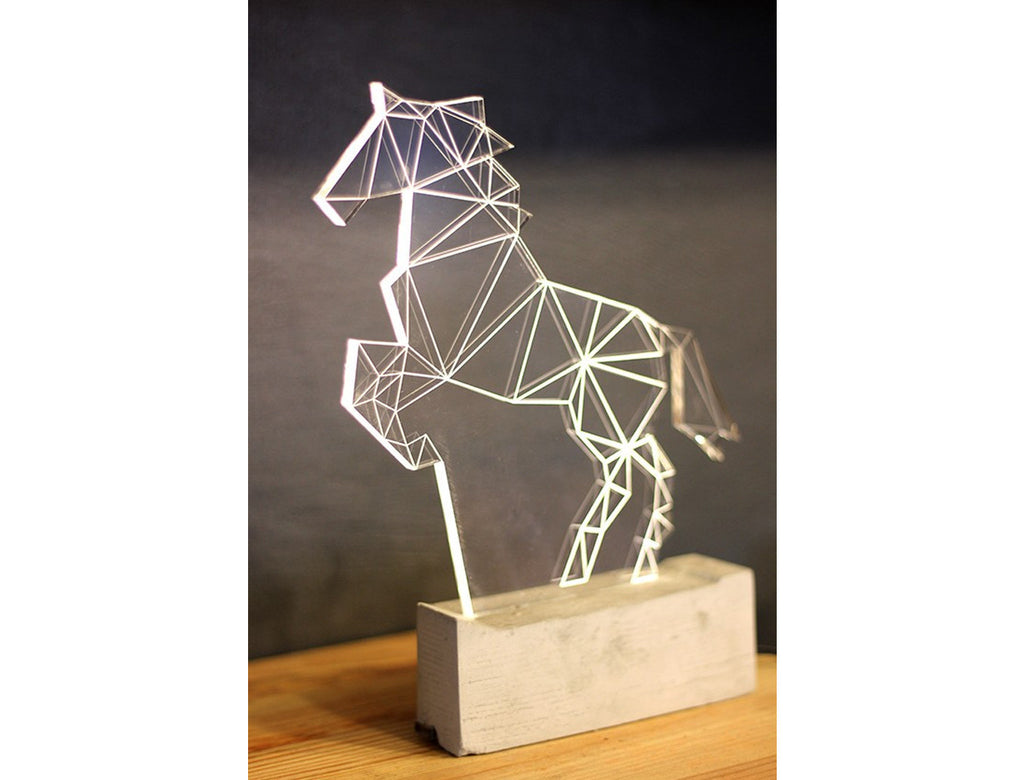 - Lamp made of a concrete base. LED emits the light through acrylic light and laser engravings.