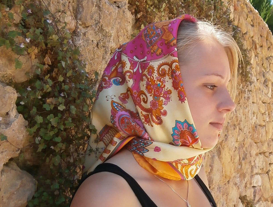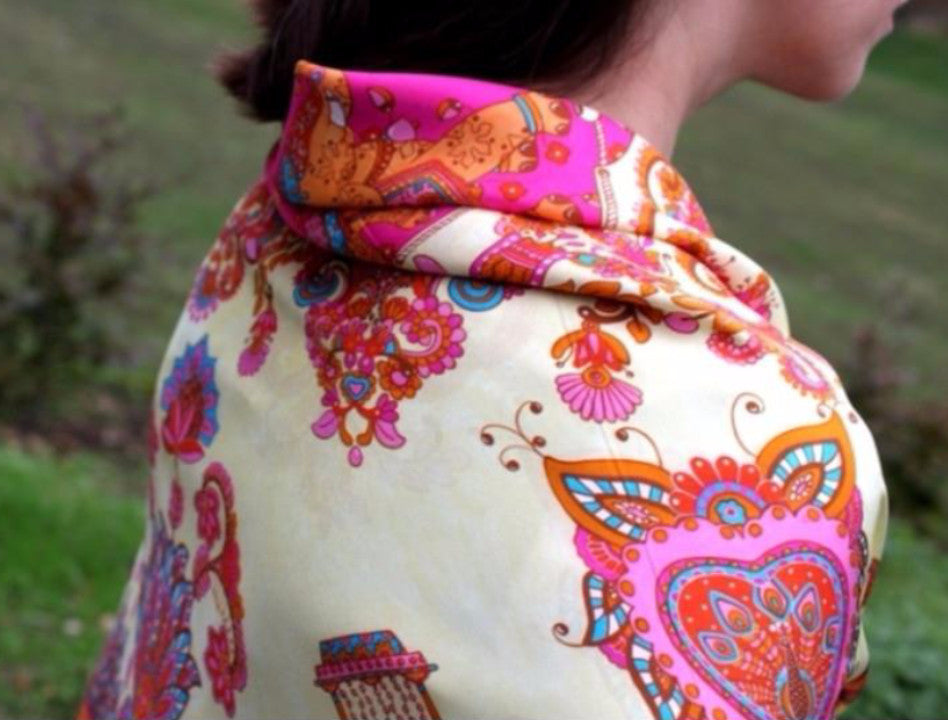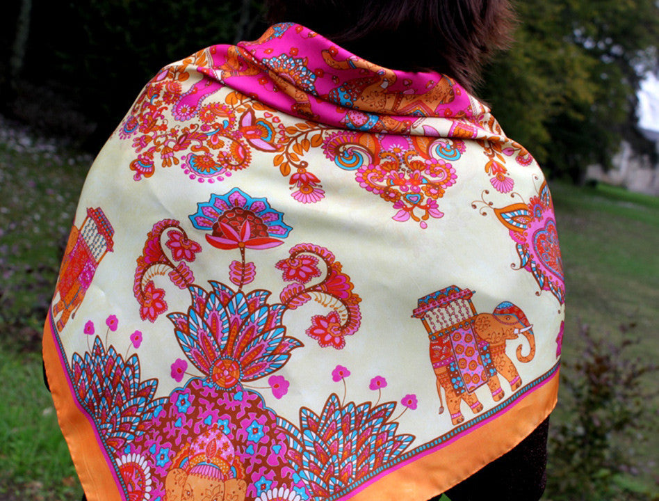 • The design has been digitally printed on silk scarf.