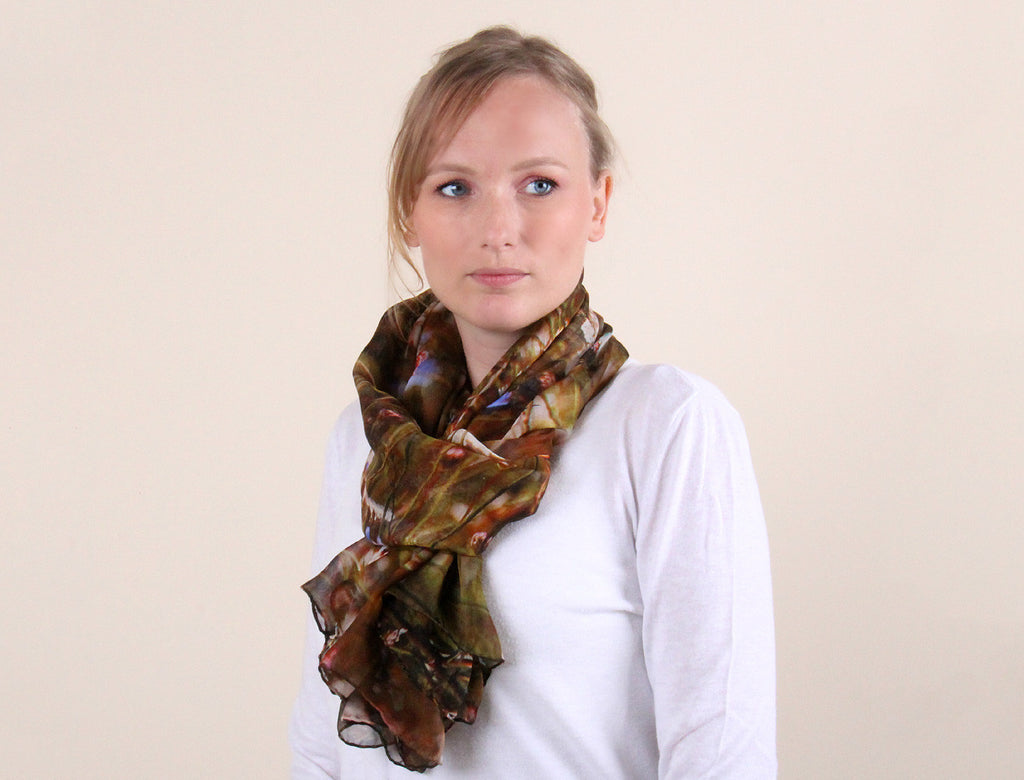 "I can remember the smell of the sweet Umbrian meadow flowers as if it was yesterday. We took a leisurely walk from the house on a Summer morning in the Niccone Valley and everywhere was flowers, grass, butterflies and birds. These beautiful colors and natural pattern, printed on light as air silk chiffon from Italy will go with anything.