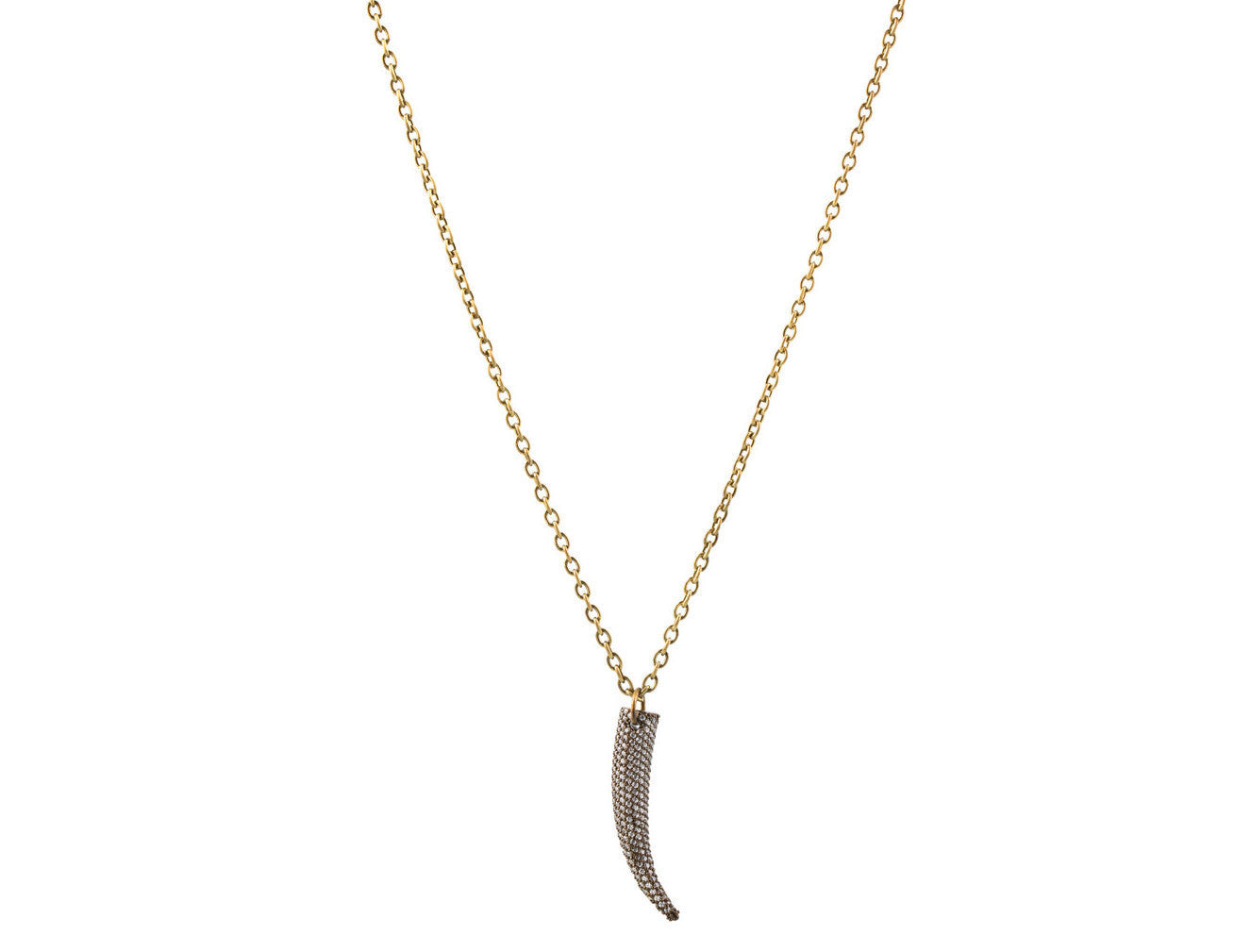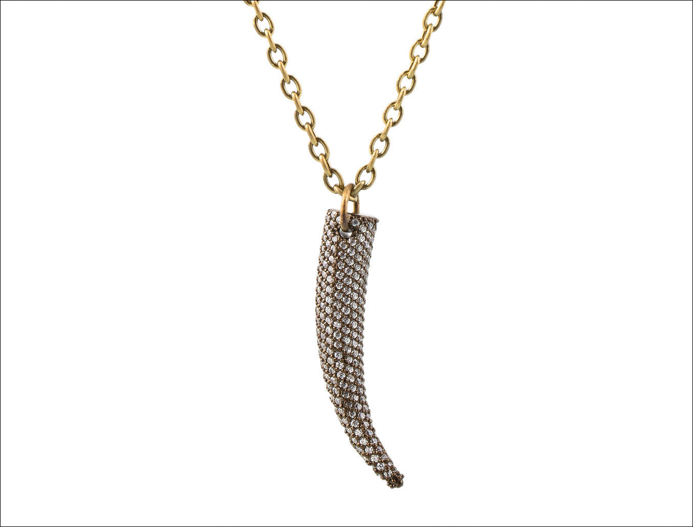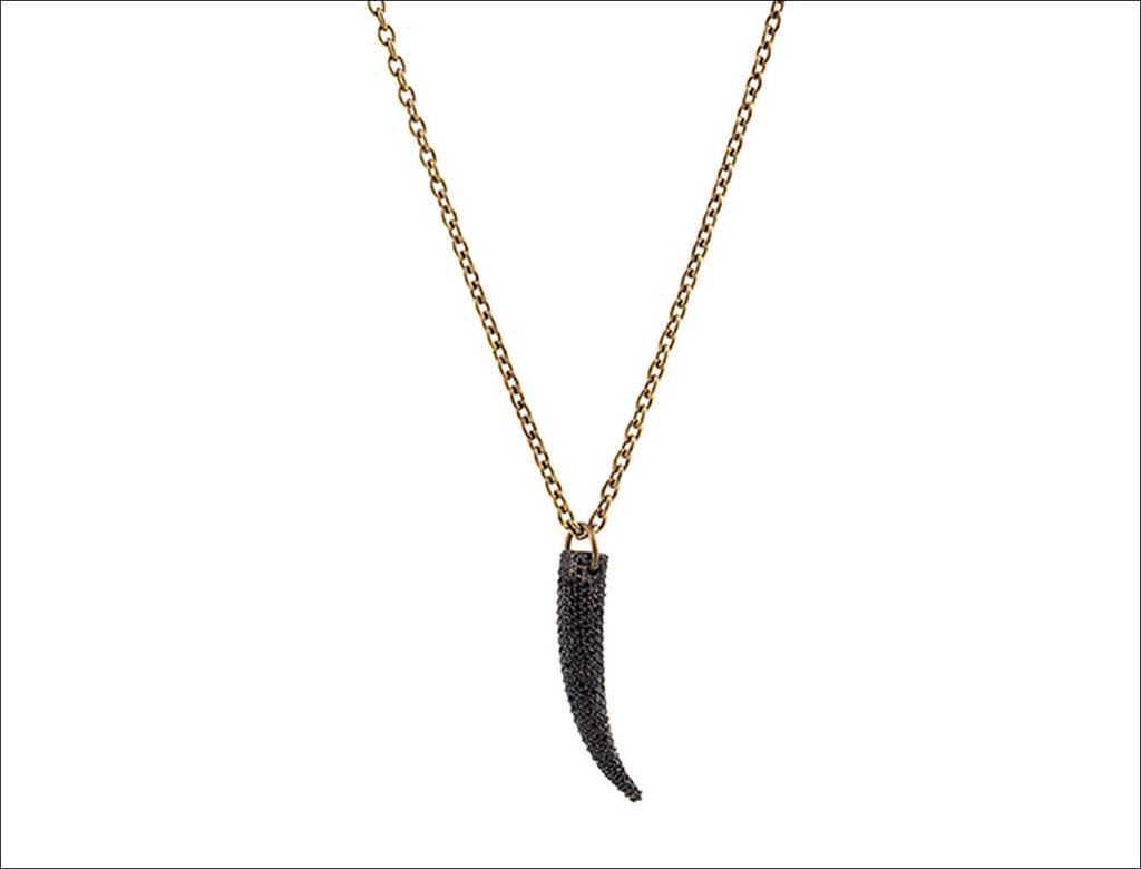 Zircon Horn pendant on a sterling silver long bronze chain.