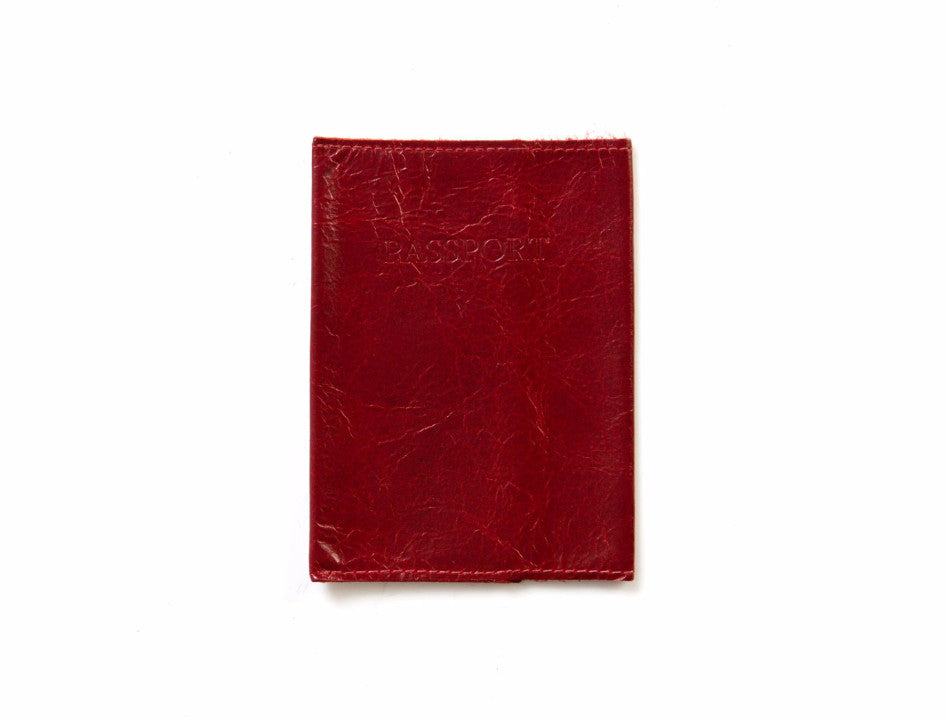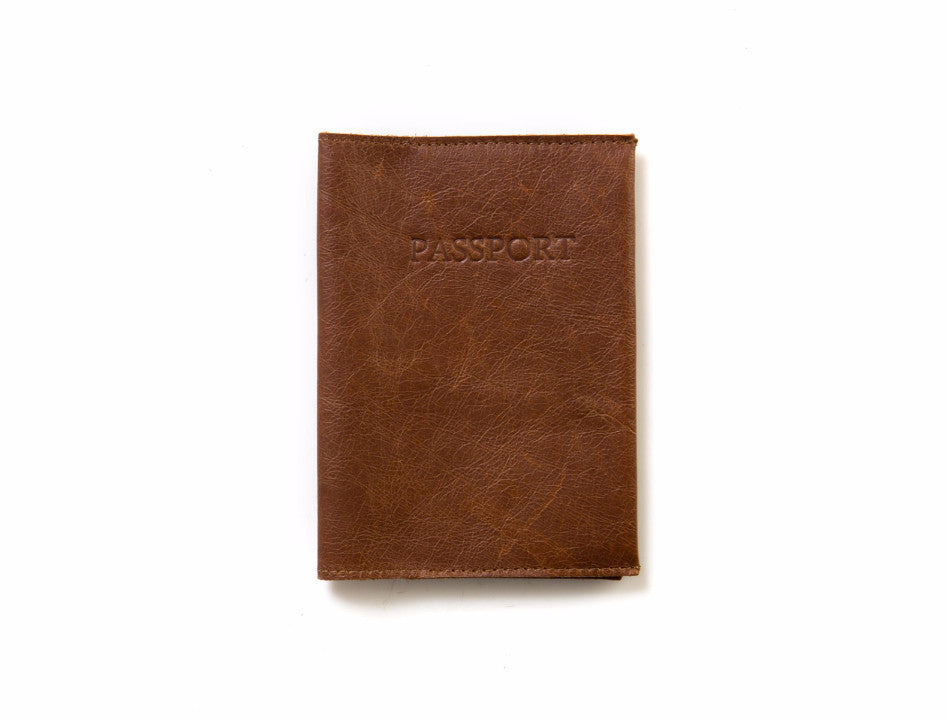 Leather Passport Cover with the word 'PASSPORT' engraved on both sides. Great as a travel gift.